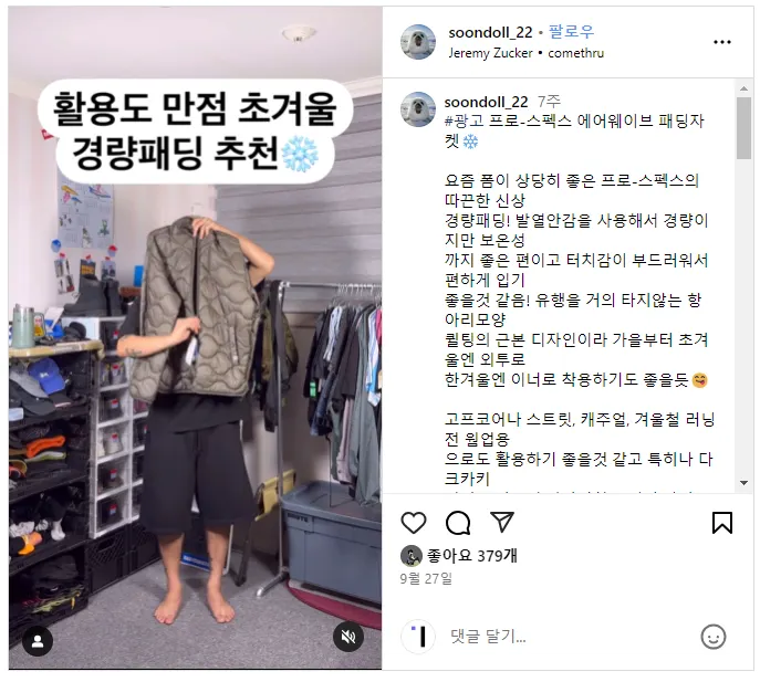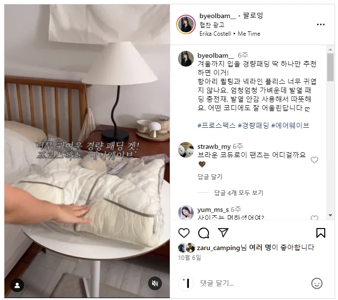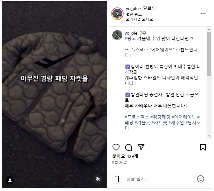 프로스펙스 경량패딩 에어웨이브 F/W 시즌 마케팅