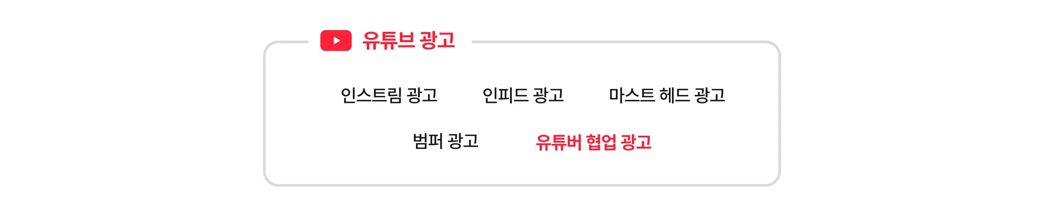 유튜브 마케팅은 유튜브 플랫폼 안에서 보여질 수 있는 모든 광고를 말합니다. 우리에게 익숙한 인스트림 광고, 범퍼 광고, 인피드 광고 등이 모두 여기에 속하고, 우리가 가장 궁금한! 크리에이터와 협업해서 진행하는 광고도 유튜브 마케팅에 포함되어 있습니다.