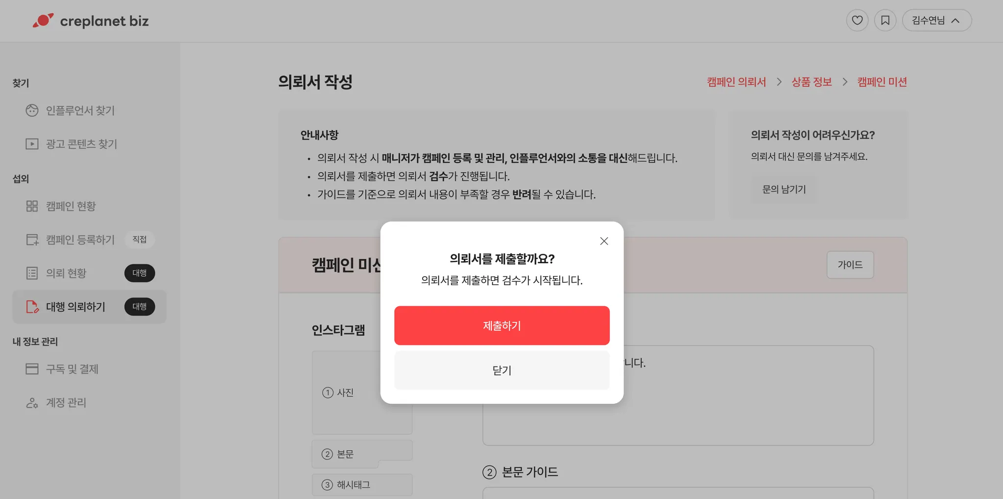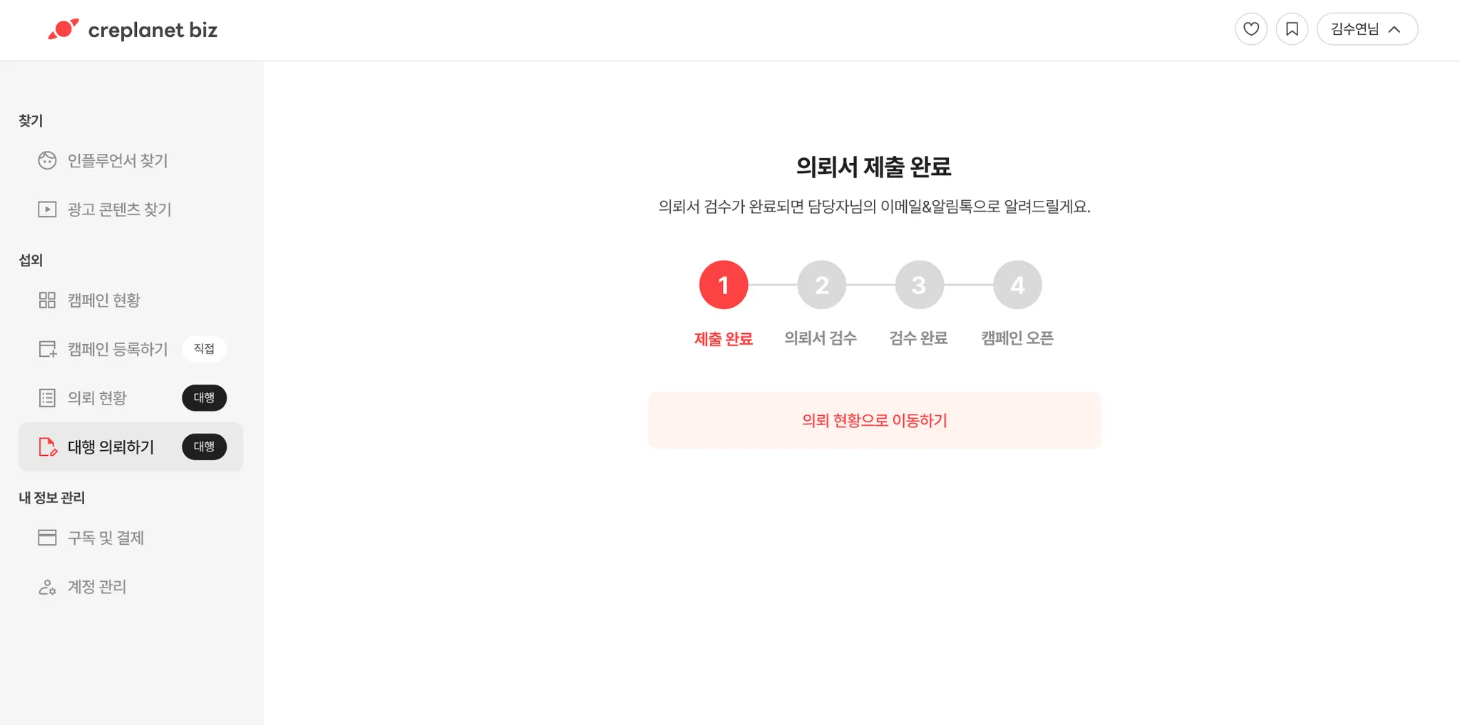 대행 의뢰하기를 통해 캠페인을 오픈하면 담당 캠페인 매니저가 배정됩니다.